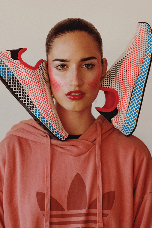 zapatillas Deerupt Adidas Originals rojas y azules, hoodie Adidas Originals