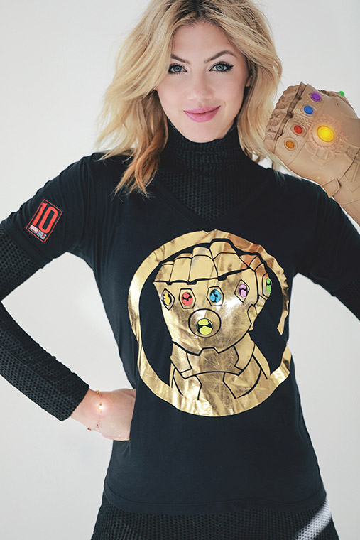 pulsera de cristales Swarovski, catsuit Custo Barcelona, guantes Thanos Infinity War x Hasbro, t-shirt Avengers: Infinity War x Disney Store