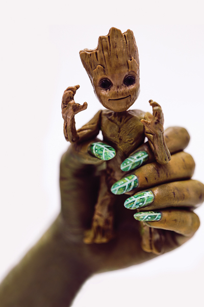 Nuestro ídolo del mes es Baby Groot (voz de Vin Diesel), nuestro guardián de la galaxia favorito. Y el nail art se apodera de remix al grito de “I am Groot”. La nueva película de Guardianes de la Galaxia Vol.2 marca el regreso de Baby Groot nuestro bien amado personaje de la saga. Este pequeño ser renace nuevamente e invade nuestro especial de nail art realizado por Laqueada y make up de Marina Esquenazi para Jazmin Calacarami, transformando en ramas todo lo que toca al grito de “I am Groot”!