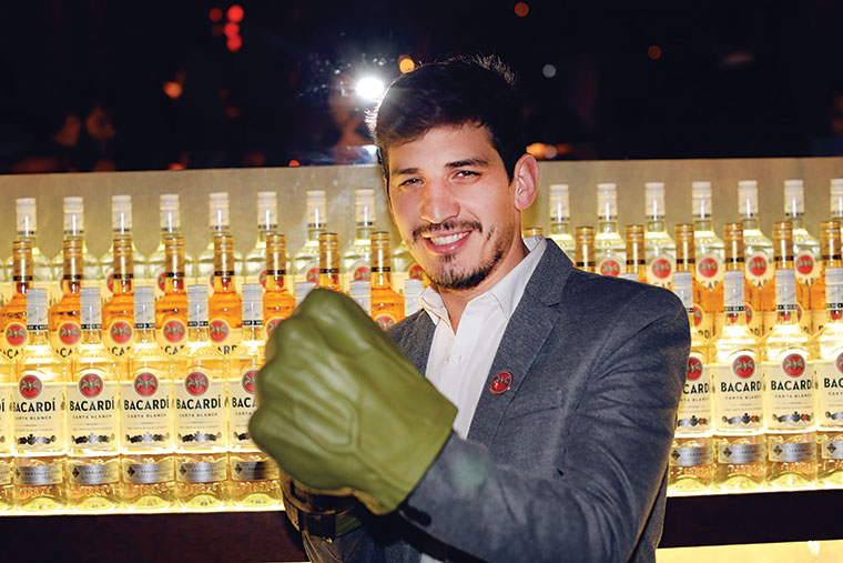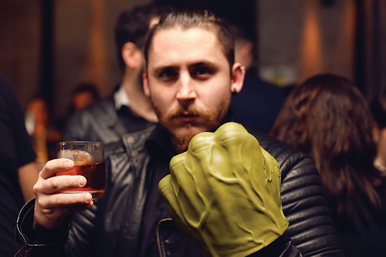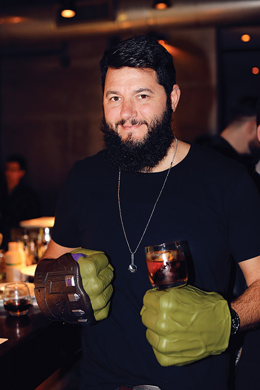 El genial Gastón De Gennaro de Bartender Tools con las manos de Hulk para nuestro número Thor-Ragnarok.
