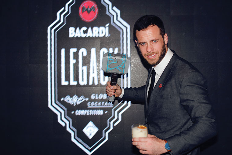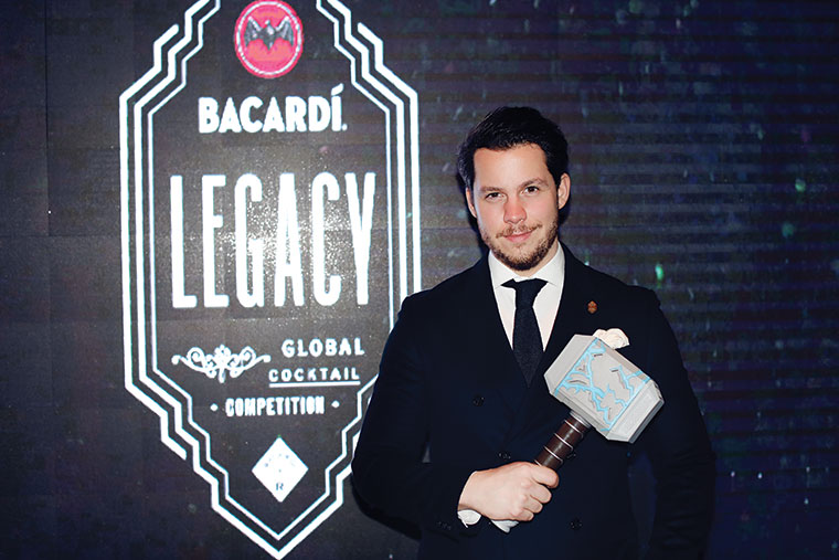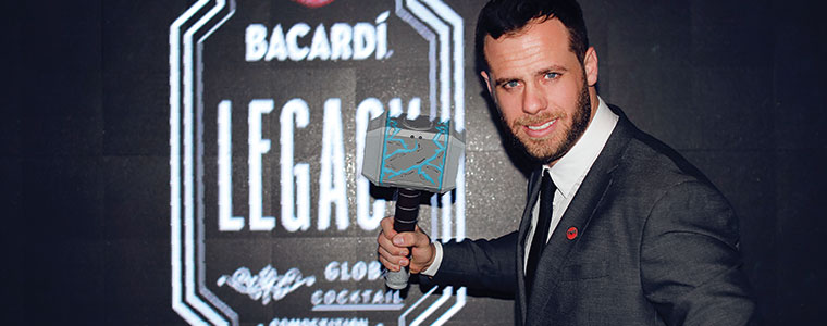 Ludovico de Biaggi, último ganador de Bacardí Legacy (con su trago Tropical Lady) junto al martillo de Thor.