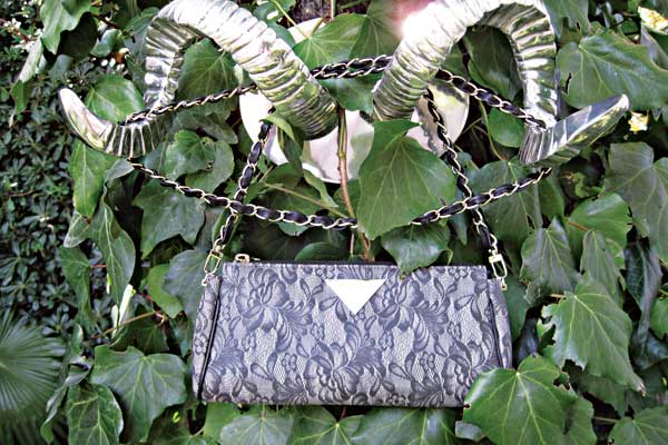 Cartera bandolera de tela print encaje con cadena Ricky Sarkany