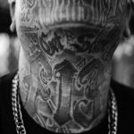 Mi primer tatuaje fue cuando tenía 13 años de edad, y fue el nombre de mi madre, porque primero y antes que nada tenía que mostrarle su amor. Mi barrio aparece en mi piel porque es de donde uno viene.