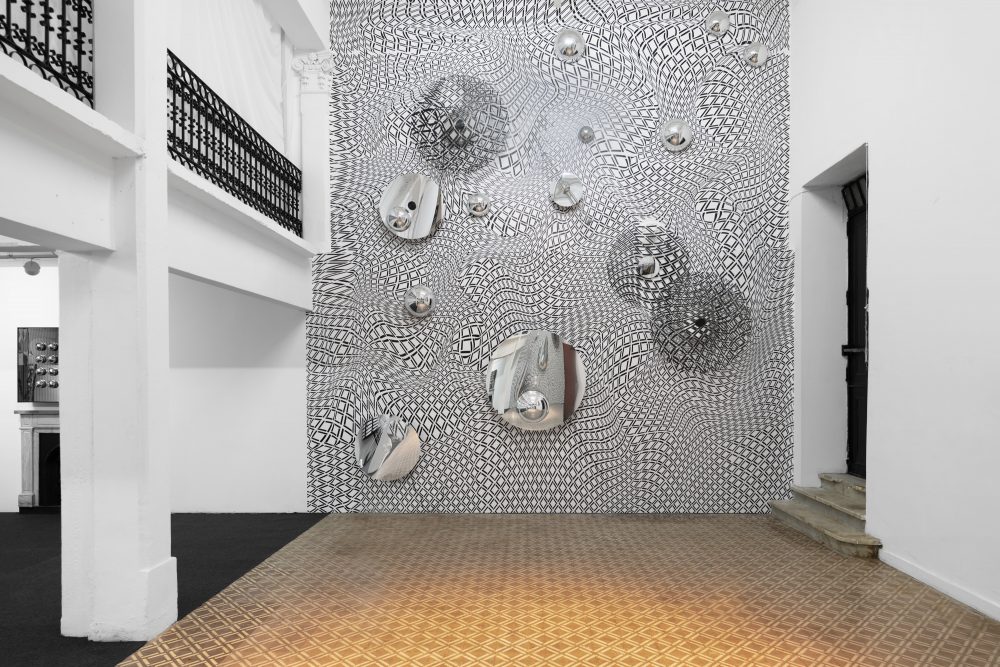 En la Sala 1, una monumental instalación cinética con piezas rotatorias y efectos ópticos generará una experiencia inmersiva. Inspirada en el «empequeñecimiento del hombre ante la máquina», la obra dialoga con el espacio y un mural de fondo que fusiona motivos del edificio con su serie «Paisajes Audibles».