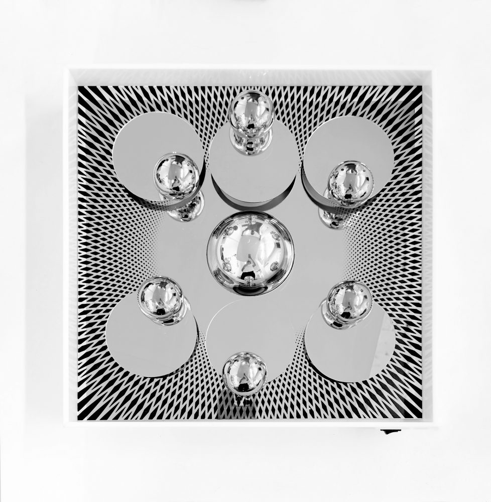 Mariana Villafañe desarrolla su obra a partir de la tecnología, la investigación matemática y la exploración del movimiento y el sonido. Sus esculturas, instalaciones y piezas cinéticas que son programadas por ella misma, encuentran inspiración en teorías filosóficas y científicas, así como también el estudio de los maestros geométricos, creando un diálogo entre la abstracción geométrica y la percepción sensorial, resignificándolas en el contexto contemporáneo.