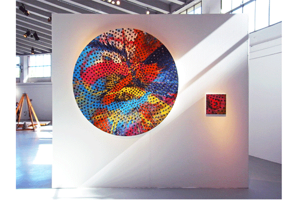 damien hirst’s ‘beautiful sunflower’ and ‘beautiful fractional sunflower’ panerai paintings on show as part of the ‘o’clock’ exhibition at the milan triennale