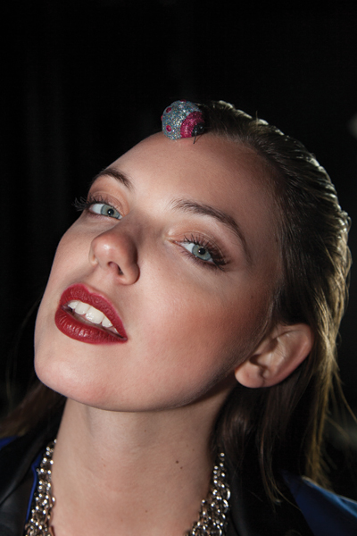 La modelo de Spirit of Fashion Iara Ezquiaga en backstage para Estudio H, staff de Pelo oficial en Bafweek.