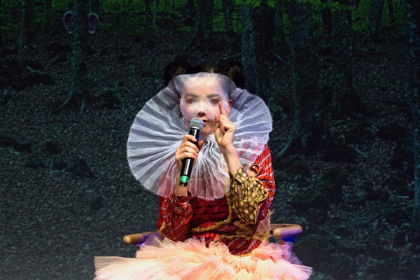 Donde explicó algunos detalles de sus dj sets que realizó después en el Sonar Arena para dar por comenzado el Festival. Obviamente apareció con un Velo mascara, de James Merry, con un gigante cuello plisado y una chaqueta roja y dorada a lo Michael Jackson era Bad , una pollera rosa de pedazos de tul y plataformas plateadas muy altas. Bjork confesó para el horror de los presentes que usaba el Garage Band de su computadora Msc para armar las estructuras de sus largos set ( entre 3 a 4 horas) que ha realizado en Tokyo Japon y en Australia coincidiendo con su muestra Digital Bjork. Confirmó su actual colaboración con el músico Venezolano Arca y como siente que los dos mentes se alimentan de cada uno y desde el disco Vilnacura están componiendo temas juntos.