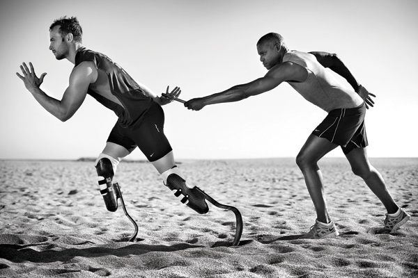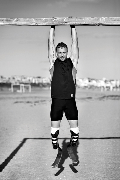 Era un hecho, la excitación se había vuelto masiva… “El corredor más rápido del mundo”; “El corredor de las piernas de acero”; “Historia y Presente”; “Legado y Promesa” eran las frases célebres que revoloteaban en mi cabeza. Y de allí surge una brillante idea, una que hoy ya no es novedad, una que hoy se instaló en el imaginario colectivo, una que hoy recorrió las portadas e innumerables páginas de los diarios y revistas más importantes del país… Y el mundo! Pero que antes de todo el frenesí era una idea, una instancia de producción a lograr. Debíamos buscar un hilo conductor, un elemento que haga del encuentro entre los épicos atletas una novedad y que, desde nuestra editorial, marque la diferencia! Y es entonces cuando Tuti sugiere “Qué Lewis le entregue la posta a Pistorius”. Antes de partir, ya teníamos todo resuelto, o casi todo. Teníamos LA IDEA, la posibilidad (gracias a Nike) de generar el encuentro y recrear nuestra brillante situación y había equipo, de esos que te dan ganas de más, de gente con la que uno elige volver a trabajar, con profesionales en mayúsculas. Pero nos faltaba el elemento clave: La Posta!. Y fue ahí donde improvisé nuevamente como productor y acudí a quien sabía que podía ayudarme y que lo haría con dedicación, calidad y la mayor de las discreciones: “Papá Raúl”, mi papá!. La posta color oro “hand made” en honor a Lewis y Pistorius era un hecho. Una brillante idea se había materializado. Y Pablo Franco detrás del lente marcó la diferencia. Es por ello que nuevamente entre nuestras páginas (Y en tapa!) re-aparece el célebre Pistorius que, además de encantador es un verdadero modelo a seguir. Portador de un carisma infinito, es el responsable de que las “diferencias” sean mentales y no físicas, el vivo ejemplo de que no se necesitan piernas para correr sino una voluntad incorruptible. Y como todo luchador ha alcanzado su recompensa: Londres 2012! Y en categoría Olímpica… “Porque las diferencias son mentales”. Gracias Totales!!!