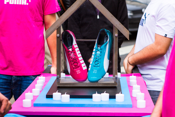 Luego, cuatro fanáticos fueron los encargados de acercar los botines al altar donde Raúl Fagalde, Gerente de Marketing de PUMA, hizo entrega de los PUMA TRICKS a Evangelina Anderson, mujer de Martín Demichelis, quien se encargó de entregárselos al Kun cuando viajó Brasil para el partido inicial de Argentina contra Bosnia.