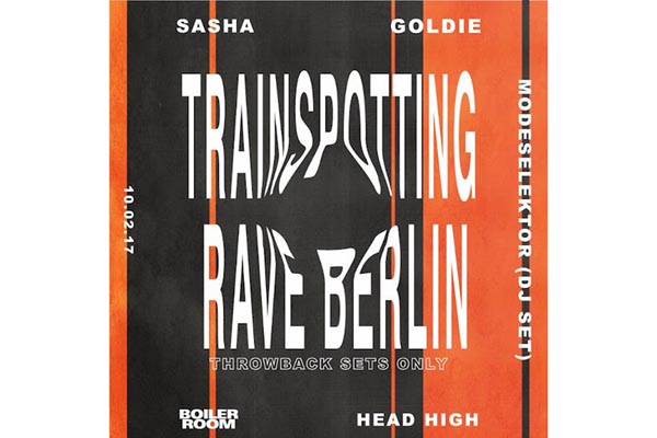 Para celebrar el próximo lanzamiento de T2: Trainspotting en el Festival de Cine de Berlín, Boiler Room tiene programado realizar un rave en honor a las escenas icónicas del club que se encuentran en la primera película. En Berlín, el rave contará con Sasha y Goldie, junto a conjuntos como Modeselektor y Head High. Boiler Room T2: Trainspotting rave se realizara el 10 de febrero en Berlín. Además, T2: Trainspotting se estrenara en los cines el 17 de marzo.