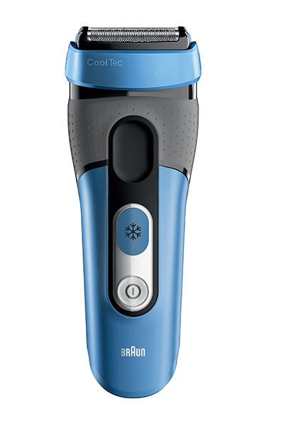Es una nueva y revolucionaria afeitadora que elimina el calor del afeitado y congela la irritación. Esta capacidad, junto con el elegante diseño y estudiada ingeniería de Braun, hace que CoolTec permita una experiencia excepcional para hombres de piel sensible. El secreto de CoolTec es la innovadora tecnología Thermo-Electric-Cooling de Braun. Mientras que la mayoría de las afeitadoras generan calor en el cabezal de la afeitadora, CoolTec cuenta con una innovadora barra de aluminio integrada en su cabezal que enfría de forma activa la piel durante el afeitado, reduciendo las sensaciones de ardor y picazón y dejando un rostro fresco y agradable. El sistema de corte adaptable se mueve de forma independiente adaptándose a todos los contornos faciales. A su vez, las SensoBlade, cuchillas especialmente diseñadas, capturan el vello que crece en diferentes direcciones para proporcionar un afeitado suave y definitivo. Clean&Charge: Hace más de 10 años, Braun inventó el Centro de Limpieza que emplea un fluido limpiador de base alcohólica que elimina el 99,999% de los gérmenes y bacterias en cada proceso de limpieza. Las pruebas han demostrado que usar la Estación Clean&Charge es 10 veces más higiénico que simplemente enjuagar la afeitadora bajo el agua del grifo.