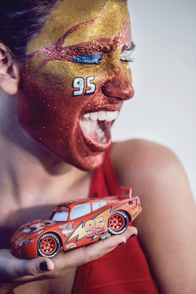 La bella Angie Landaburu, más conocida en Instagram como @angelitalc realizó junto a Regina un brillante make-up artist inspirado en la película Cars 3 bajo el lente de Tuti Gianakis.