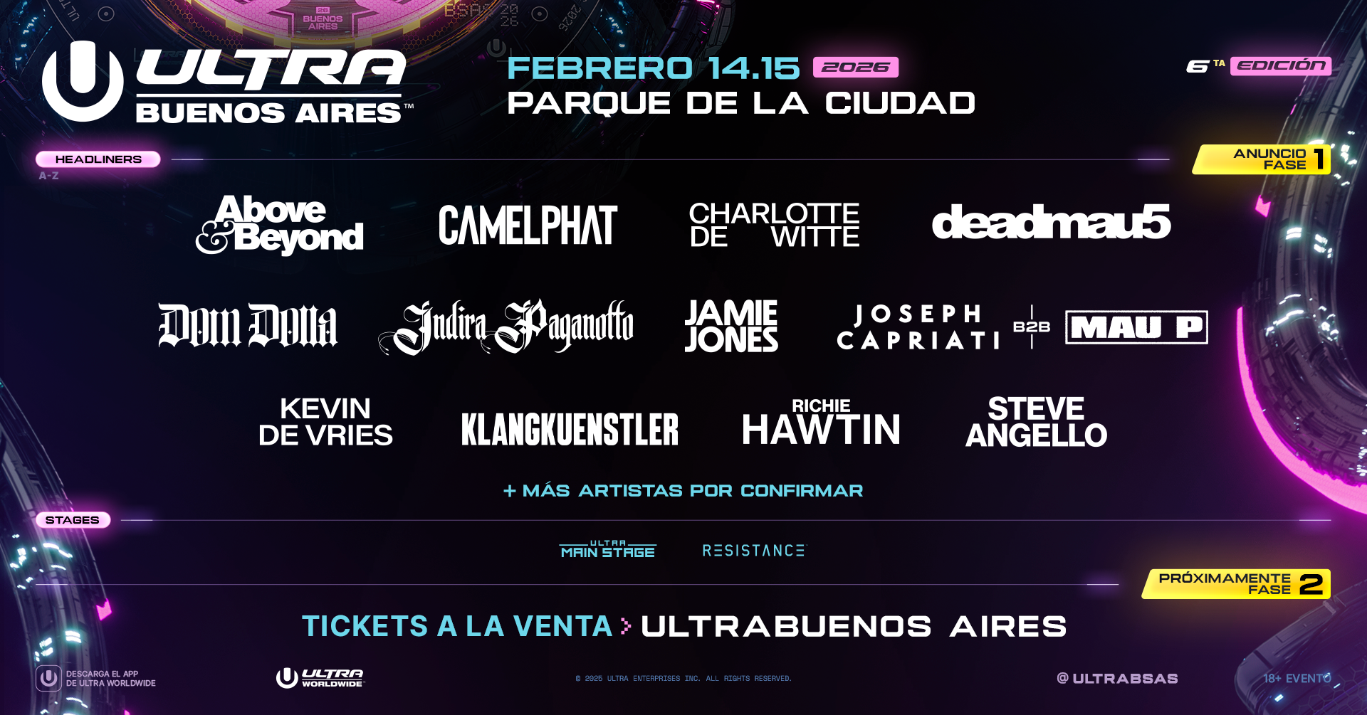Ultra Buenos Aires acaba de anunciar el lineup de Fase 1 para su sexta edición el 14 y 15 de Febrero del 2026.