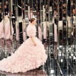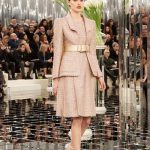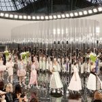 Transponer el ambiente del ´31, rue Cambon sin copiar todos los detalles. Eso es lo que Karl Lagerfeld tenía en mente para la presentación de la colección Primavera-Verano 2017 de alta costura en el Grand Palais. En una decoración inspirada en los años 30 y Art Deco, el escenario recuerda los espejos que reflejan la gran escalera que conduce a los salones de alta costura de CHANEL. Esta vez son los sofás beige que parecen haberse multiplicado. Al principio, un gran cilindro actúa como un caleidoscopio en medio de la pista: frente a ella, los modelos parecen atravesar el infinito, sus siluetas también se reflejan en los mosaicos de espejos ahumados grabados con el icónico motivo acolchado.