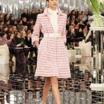 Con gran delicadeza, los trajes de tweed con trenza bordada se cubren en la cintura, mejorando así las curvas de sus faldas de tulipán. Jugar con trompe l’oeil se convierten en abrigos, la chaqueta que parece estar metido en una falda lápiz. En la espalda, pliegues de golf de ancho garantizar el máximo confort. Iguales que femeninas y desgastadas con las chaquetas del tweed, los vestidos con el collar oficial o lavallière se viste en cortinas brillantes. Las faldas plisadas y los vestidos se emparejan con los abrigos en tweeds iridiscentes.