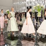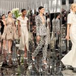 Con un cabello liso y un sombrero inclinado «atrasado» y tacones plateados de cuero o botas de muslo, el look de esta temporada es una feminidad loca: con hombros estructurados, cinturas definidas y ligeramente levantadas, revela las caderas acentuadas. Una silueta glamorosa reforzada por la presencia de líneas rectas o tubulares, decolletés audazmente cortados y joyas de perlas falsas transformadas en tobilleras. Al lado de los tonos principales de blanco, plata y gris, la paleta – iluminada cada vez con notas metálicas, plateadas, brillantes e iridiscentes – sopla caliente y fría, pasando de beige, rosa, amarillo, azul y verde pastel a negro y azul Marine.