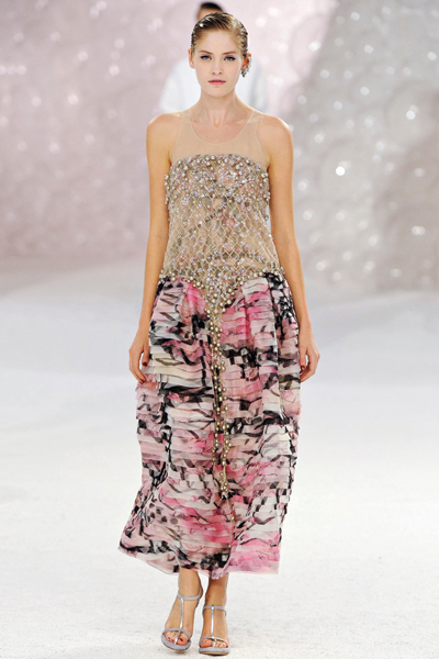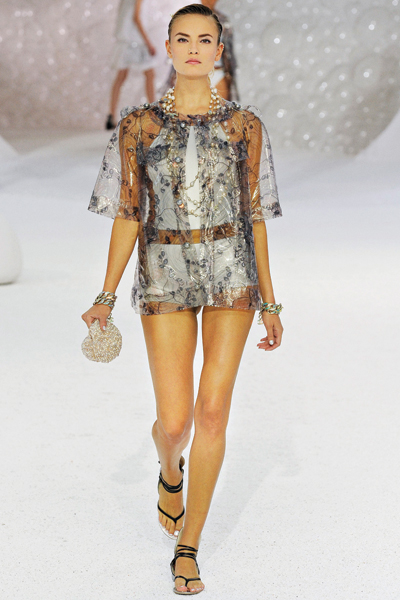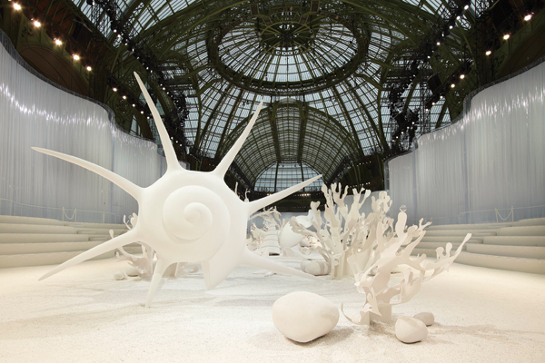 Inspirado en el mar, el supremo Karl Lagerfeld nos hipnotiza con su espectacular colección primavera-verano 2012 re-interpretando míticas criaturas como corales, ostras e hipocámpos que convierten al hotel Gran Palais de París en un fondo marino espectacular.