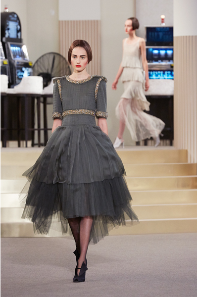 Para el show de Alta Costura Otoño-Invierno 2015/16 Karl Lagerfeld sorprendió a la audiencia con la presentación de su colección en un casino reinventó en el Grand Palais con cerca de 20 celebridades internacionales, todos los amigos cercanos de CHANEL, jugando al blackjack en Le Cercle Privé.