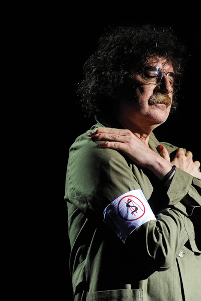 Aparece entonces en la intimidad de su legendario refugio, el departamento de Coronel Díaz, en viajes y en recitales, en espacios que adquieren, muchas veces por obra del mismo Charly, un aspecto escenográfico, teatral, con textos en las paredes, manchas y dibujos que marcan sus distintos momentos. Esos fondos cargados, expresivos, barrocos, adquieren una presencia muy fuerte, pero no opacan la figura imprevisible y desgarbada del mito. Se arma, de esta manera, un gran fresco en el que, como un puzzle gigante y extendido en el tiempo, cada foto aporta una mirada, una expresión, un clima.