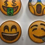 Murakami también extendió sus tentáculos con cuadros y merchandising junto al rappero canadiense Drake y su linea Ovo y una divertida muestra de los redondos cuadros de emojis por Madsaki