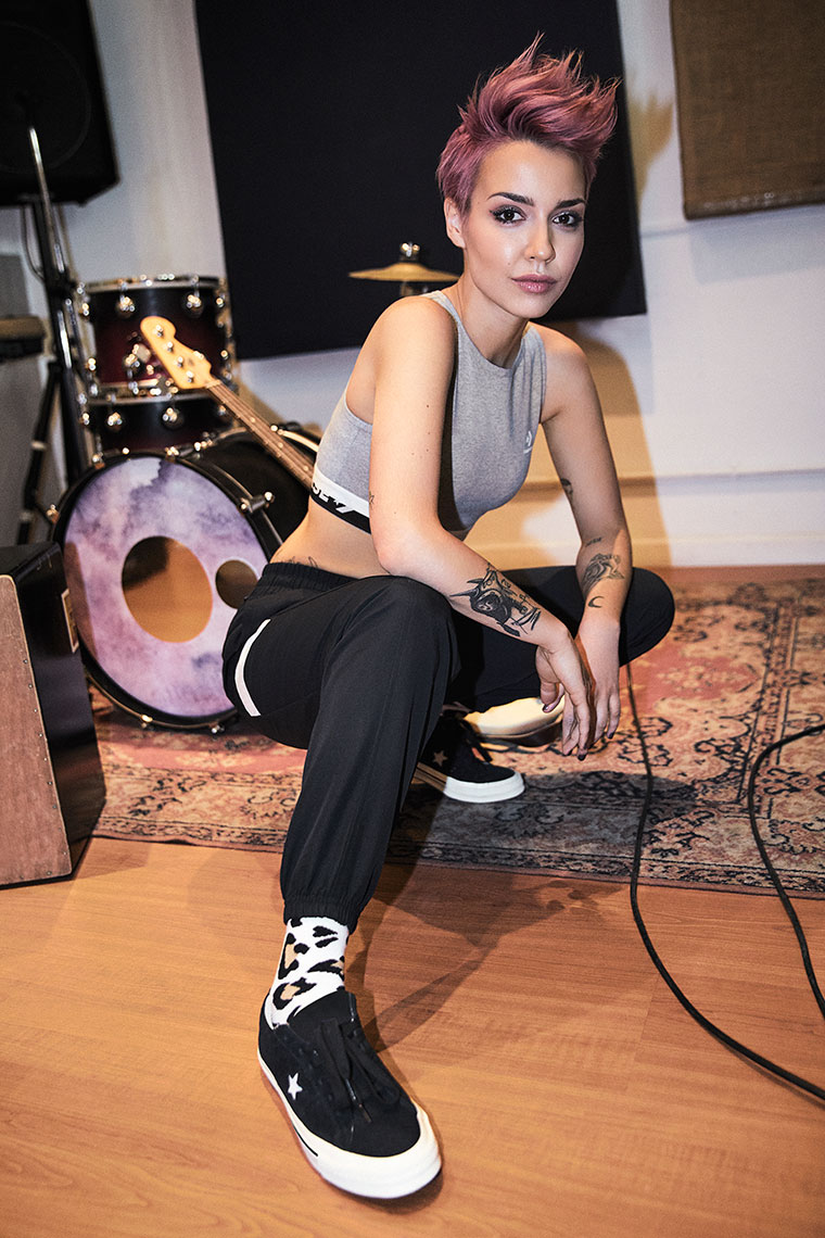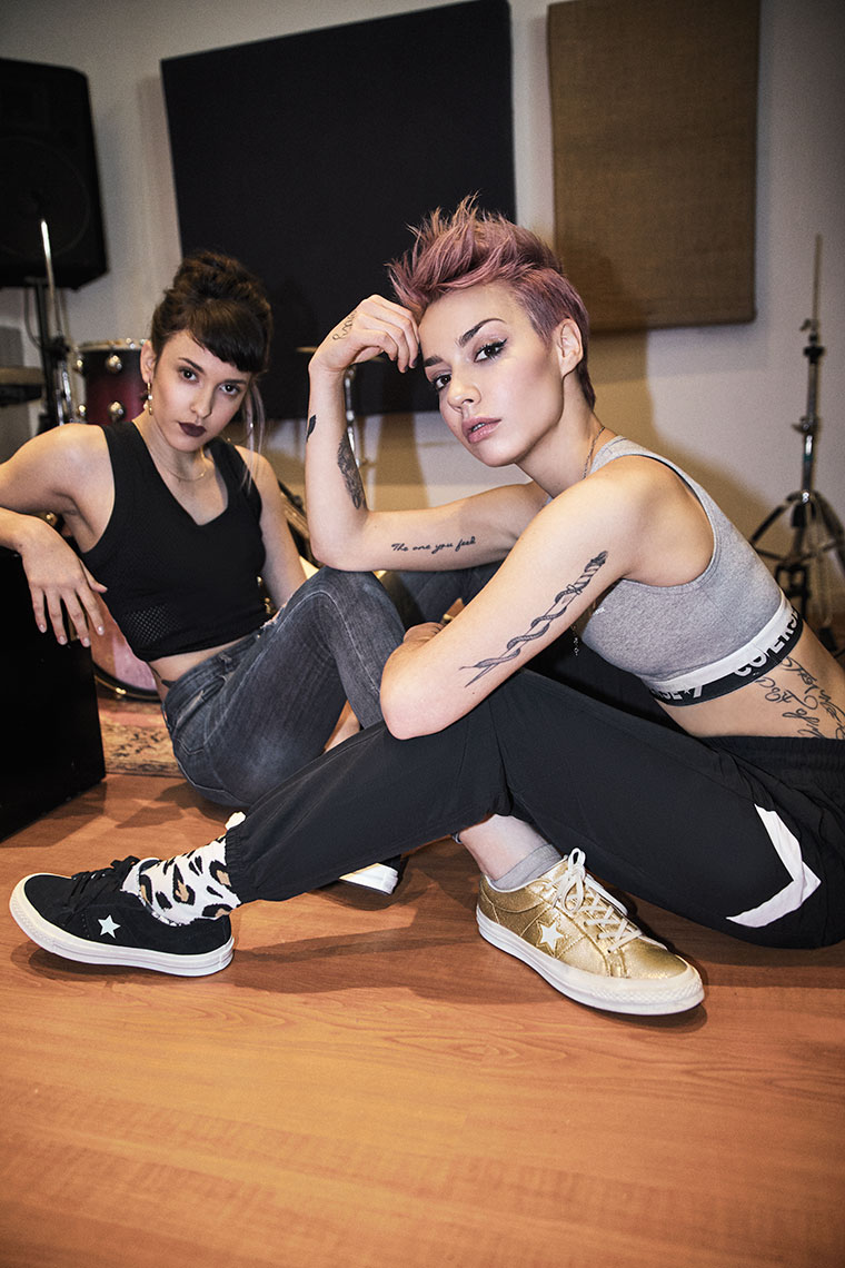 Femigangsta y su banda exhiben las nuevas zapatillas Converse One Star que reflejan su espíritu rebelde, independiente. Inspiradas en la cultura skate de los años 90´s y dándole un giro a las clásicas One Star, con la iconica estrella en color blanco, se presentan la One star Vintage Suede y las Metallics. Desde su debut en 1974, las One Star pasaron a ser adoptadas por los independientes. Optimizamos la edición de la década de los 90´ con gamuza de primer nivel, detalles en las estrellas recortadas, un ajuste más ceñido y una suela Othorlite acolchada. Están disponibles en color naranja, celeste, roja con fucsia, plateada y dorada.