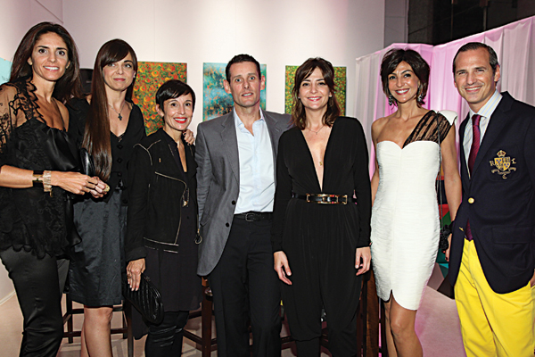 Paula González Magrane, Majo Parodi, Ana torrejón, Sandra Hillard y Evangelina Bomparola sonríen junto al cumpleañero.