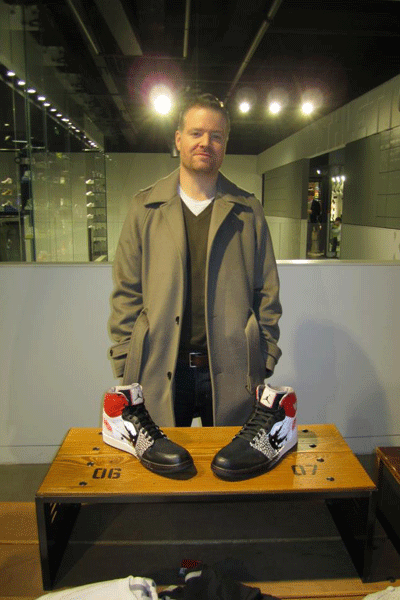 El pintor inglés Dave white con su Nike Fuelband. Estuvimos con el en el local de Nike en londres, y nos conto sobre las famosas zapatillas Jordan «Wings for the Future» !
