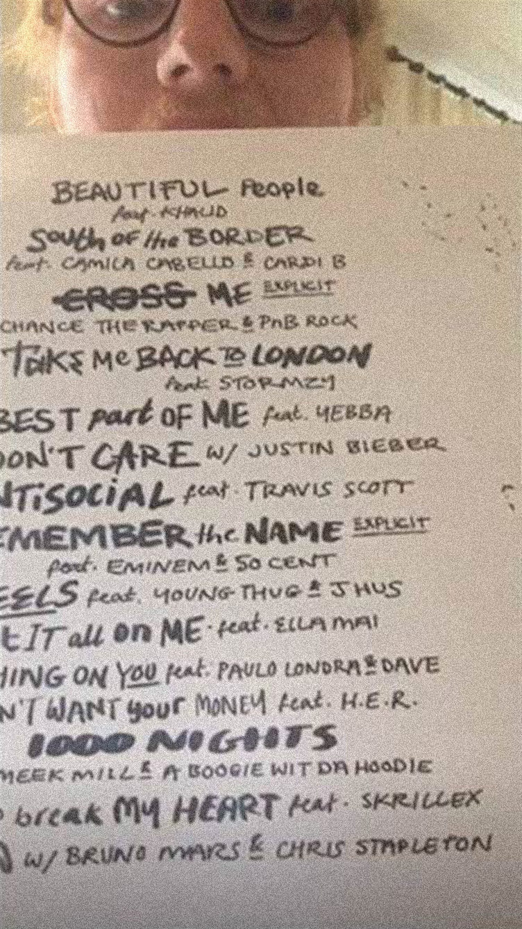 La noticia de los temas llega tras la salida de los éxitos internacionales de ‘I Don’t Care’ con Justin Bieber y ‘Cross Me’ feat. Chance the Rapper and PnB Rock. Estas canciones, que llegaron a superar los 750 millones de reproducciones a la fecha, están incluidas en el mencionado álbum. Considerado ya como uno de los grandes hits del año, ‘I Don’t Care’ se aseguró el último viernes cinco semanas consecutivas en la posición N°1 de la lista oficial de singles en Reino Unido.