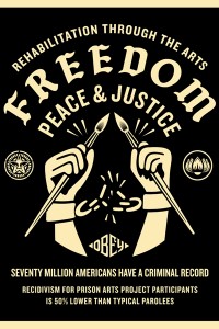 Frank Shepard Fairey, OBEY, (nacido el 15 de febrero de 1970 en Charleston, Carolina del Sur, Estados Unidos) es un artista urbano y diseñador gráfico estadounidense, famoso por sus pegatinas con la imagen del luchador televisivo André el Gigante y por sus diseños que toman elementos del cartelismo de propaganda política de mediados del Siglo XX. Ahora nos cuenta que participará de Open Source: «Fui invitado por mi amigo, curador y frecuente colaborador, Pedro Alonzo ser parte del proyecto Open Source que puso junto con el Museo de Arte de Filadelfia y el programa Mural Arts de Filadelfia. Me encanta el concepto de código abierto porque creo en la democratización del arte y utilizando el arte como una forma de difundir imágenes de interés social. Mi arte siempre ha tenido un componente viral, pero Internet me ha permitido no sólo compartir mi trabajo con una audiencia mucho mayor, sino que también le proporcionado de herramientas digitales a ese público para que puedan difundir mis imágenes si creen en el mensaje. Elegí centrarme en la encarcelación para este proyecto, porque creo que los verdaderos costos y problemas del sistema actual deben ser abordados, y se necesita la reforma penitenciaria. Diseñé dos murales y voy a estar pintando uno con mis asistentes, mientras que el otro será pintado por los presos que forman parte del programa de Artes Murales en la prisión Graterford. Los presos no pueden salir de la prisión para pintar por eso lo harán sobre el material del paracaídas que luego se adhiere a la pared por medio de gel acrílico. Ambos murales tratan de desestigmatizar el encarcelamiento. Setenta millones de estadounidenses tienen antecedentes penales (yo soy uno de ellos) y cuando vuelven a entrar en la sociedad es importante que estas personas tienen la formación y las formas de superar la etiqueta de «ex convicto» que puede ser tan sofocante. Incluí algunas estadísticas relevantes y además de mi contribución de arte público al proyecto, se ofrecerán pegatinas libres, y una selección de mis imágenes reforma penitenciaria».