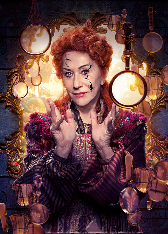 MADRE GINGER (Helen Mirren), líder del oscuro y amenazante Cuarto Reino, genera terror en todos los habitantes de los demás reinos. Hace tiempo gobernaba la entrañable Tierra del Pasatiempo, un lugar de sabiduría y entretenimiento, pero un violento conflicto entre los regentes la llevó al exilio y a que su reino se convirtiera en un olvidado parque de atracciones con un carrusel abandonado y desobedientes polichinelas. Madre Ginger tiene cabello rojo fuerte, y su rostro está astillado y resquebrajado como el de una muñeca rota, un aspecto que enfatiza su reputación de tirana malvada.