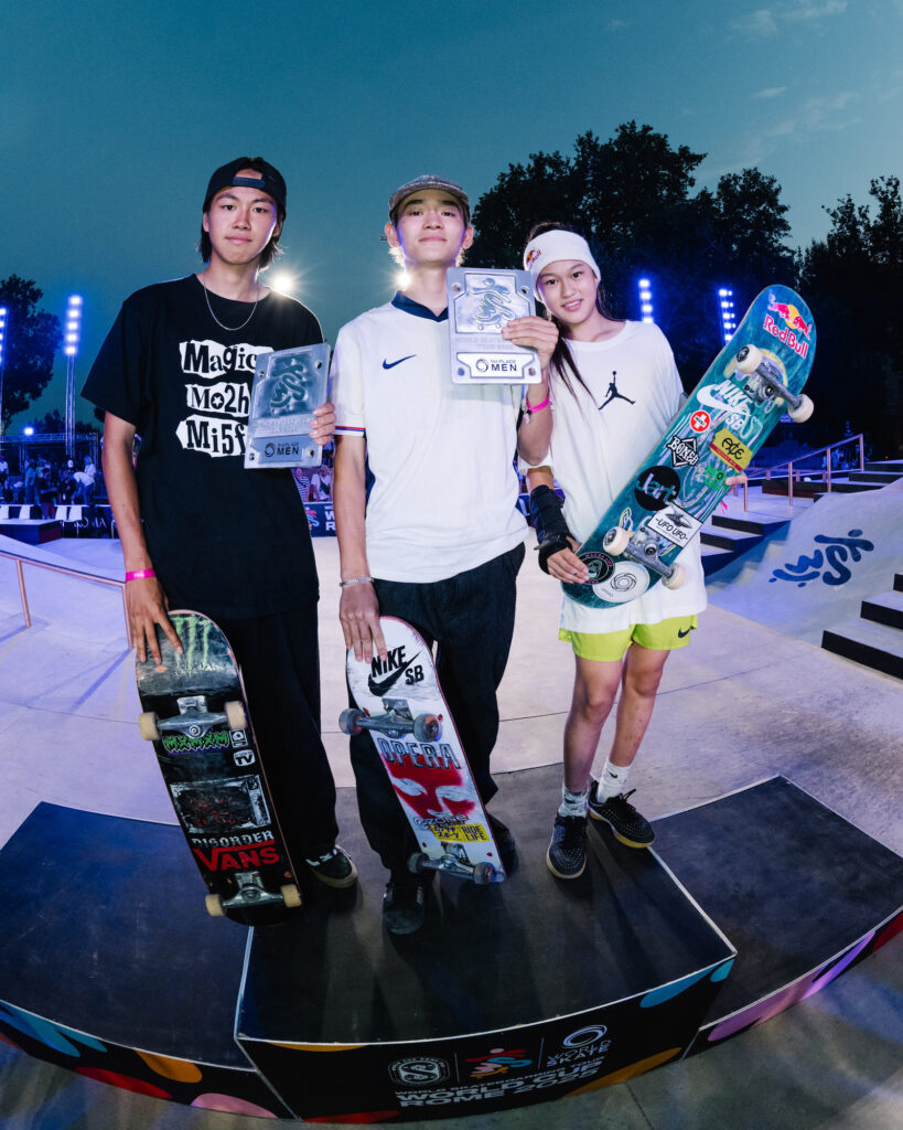 El nivel del skateboarding alcanzó nuevas cotas con la australiana Chloe Covell, que se deshizo de una campaña olímpica para el olvido en París con su primera victoria en el WST tras tres años completos casi lograda, mientras que el japonés Sora Shirai dio pinceladas con dos carreras perfectas de 45 segundos y ya había ganado con su primer Best Trick.