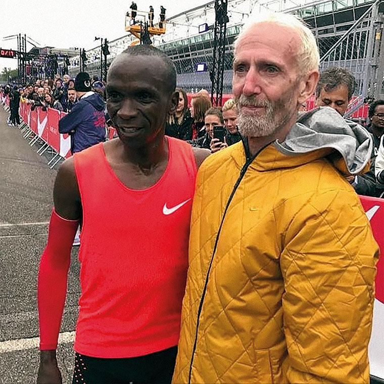 Eliud Kipchoge junto a Sandy Bodecker en la pista de carreras en Monza ( Italia). Sandy fue el impulsor del Breaking2, creador de NIKE SB y NIKE FUTBOL.