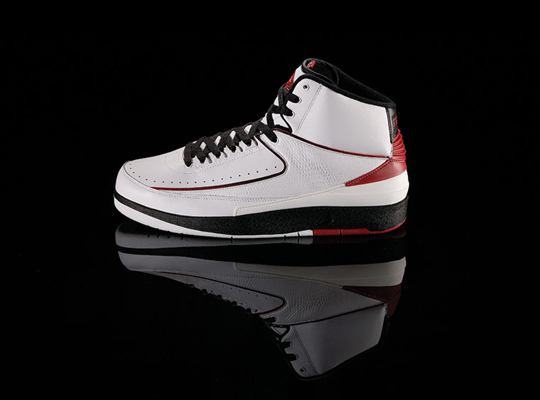 Air Jordan II. La zapatilla Air Jordan II, inspirada en las botas italianas, la Air Jordan II tenía una falsa piel de lagarto en el costado, y una suela media más gorda. Diseñadas por Peter Moore y Bruce Kilgore.