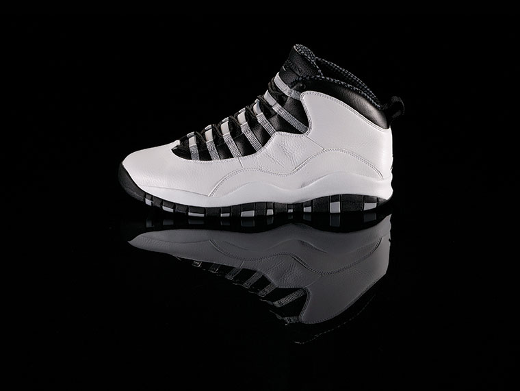 Air Jordan X. En la zapatilla Air Jordan X los elementos de diseño incluían una suela exterior separada y una suela media Pylon de velocidad, más el agregado estético de franjas debajo de los cordones.