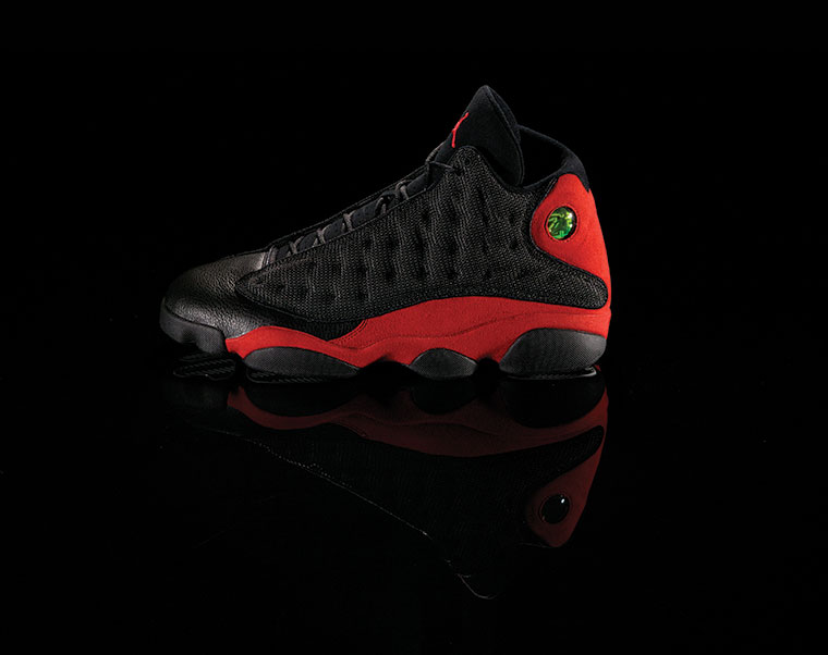Air Jordan XIII. La zapatilla Air Jordan XIII estaba llena de elementos de performance y diseño, el Air Jordan XIII incorporadba un holograma con el número 23, suela externa inspirada en garras de pantera, placa de fibra de carbono y una unidad Zoom Air. Diseñadas por Tinker Hatfield.