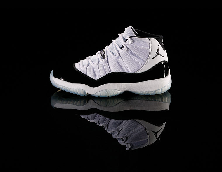 Air Jordan XI. La zapatilla Air Jordan XI fue el primer zapato atlético de cuero patentado que incluía loops con un mesh balístico superior y una placa elástica de fibra de carbono, que hacían más liviano y durable al calzado, con mejor torsión. Diseñadas por Tinker Hatfield.