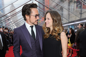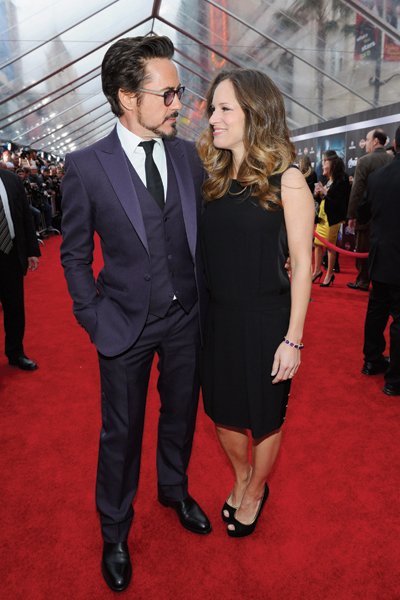 Robert Downey Jr. junto a su mujer en la premiere de The Avengers.