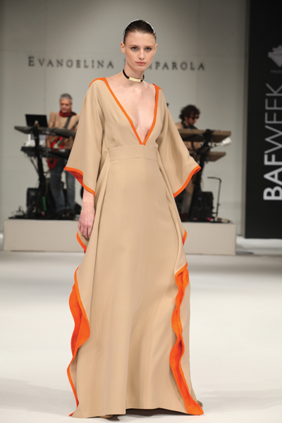 Evangelina Bomparola revolucionó la pasarela del BAF con la presentación de su nueva colección S/S 2011-2012, donde los ponchos en nude y naranja fueron los verdaderos protagonistas.