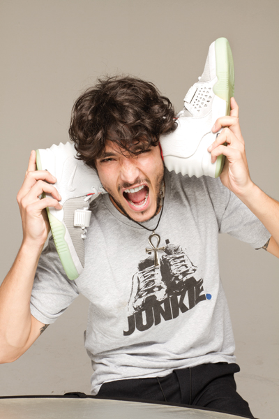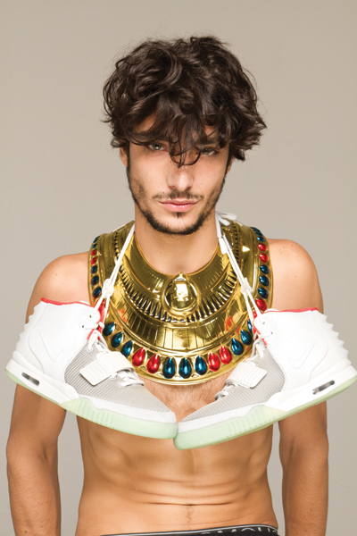 El supermodelo de Civiles Lucho Jacob se calza el armazón de Tutankamón remixado con las agotadísimas sneakers Nike Air Yeezy II x Kanye West. Y se revela ante nosotros!