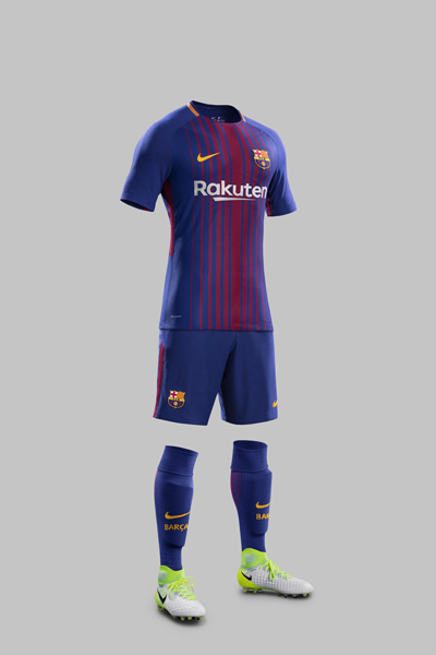 El reciente campeón de la Copa del Rey, el Futbol Club Barcelona, presenta su nueva camiseta para la temporada 2017-18. La nueva camiseta del FC Barcelona se define por una interpretación actualizada de las bandas tradicionales Blaugrana y la tecnología Aeroswift, para un rendimiento de vanguardia repleto de detalles contemporáneos.