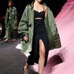 Con semejante show, la entrada de Rihanna no iba a ser el clásico saludo a pie, discreto y casi con cierto miedo escénico, al que nos tienen acostumbrados tantos creadores. La diva hizo honor a su título de bad gal  sobre una moto. Con unas hiperbólicas botas over-the-knee, en sintonía con una colección que era un homenaje a los estilismos de vibraciones sport de nuestra adolescencia.