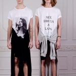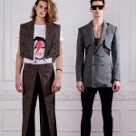 La paleta del diseñador es fría con acentos de color que unifican los conjuntos por medio de estampas con tecnología digital y en otros casos con tecnología láser, como podemos observar sobre textiles como el denim.