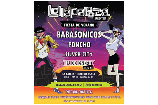 La fiesta de verano contará con la presencia de Babasonicos, que continúan su 25 aniversario, Poncho y Silver City. Miles de fans han estado esperando este momento, preparate para ser parte de la gran fiesta de verano del festival más importante del país.