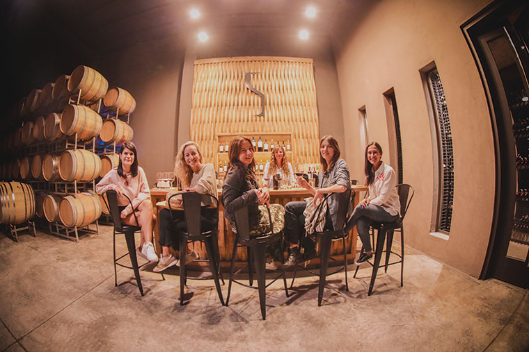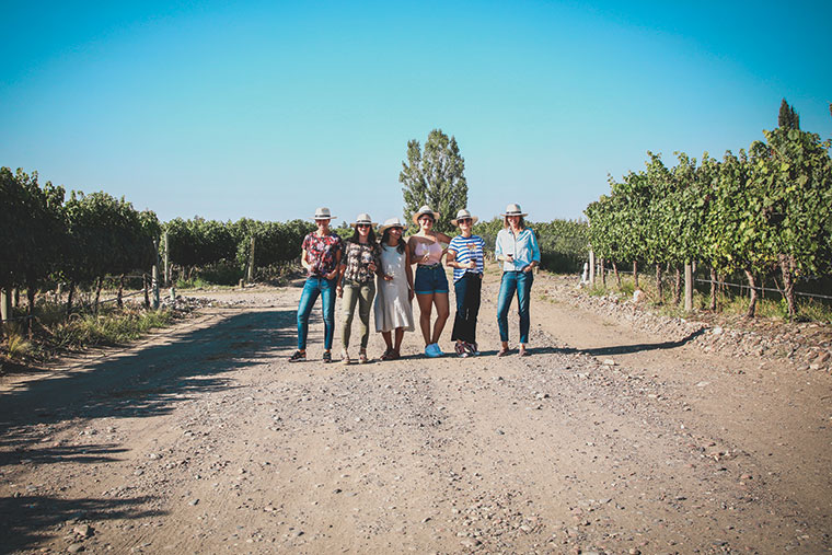 Las sommeliers Mariana Torta, Ines de los Santos, Agustina de Alba, Dafne Schilling y Eugenia Luka de Sophenia se dieron cita en la sala de cata de la bodega.