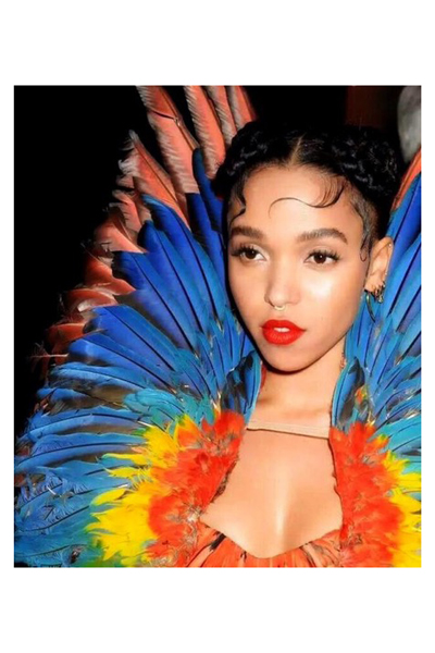 Fka Twigs, no solo apareció con el icónico vestido del diseñador sino que también realizo un pequeño espectáculo. Susie Bubble grabó un video de su show en la gala, cantando «Two Weeks” puesta el vestido de ave: https://instagram.com/p/0JZfujKavC