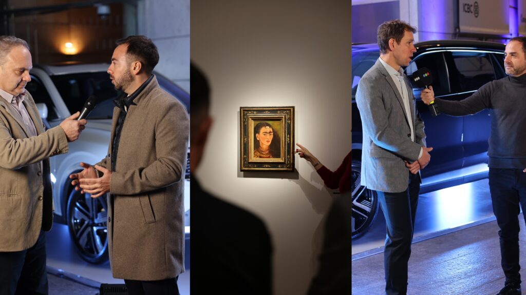 Osvaldo Santi y Gaston Galdeano de Ford entrevistados frente a las Nueva Teritory . Los invitados tuvieron una visita privada del Museo Malba y la impresionante colección de arte del Museo Malba y la muestra » Tercer Ojo» de su fundador, Eduardo F. Costantini, donde se lucen obras de la brsileña Tarsila do Amaral, el argentino Leon Ferrari y el retrato de la mejicana Frida Kahlo.
