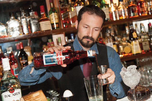 1oz Bacardí superior + 1oz  Gancia Spritz + 1 oz jugo de lima + clara de huevo + Albahaca + Garnish: Piel de pomelo y bitter casero