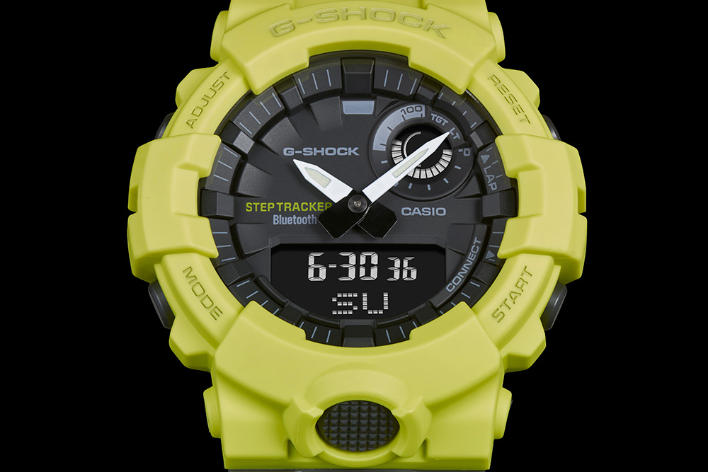 El nuevo GBA-800 cuenta con un acelerómetro de tres ejes integrado que mide los pasos diarios (caminata o carrera). La sincronización se logra a través de Bluetooth®, vinculando el reloj con un smartphone, y envía los datos a la aplicación G-SHOCK Connected (de descarga gratuita desde App Store y Google Play), que permite a los usuarios rastrear y visualizar la rutina realizada y las calorías consumidas.