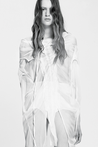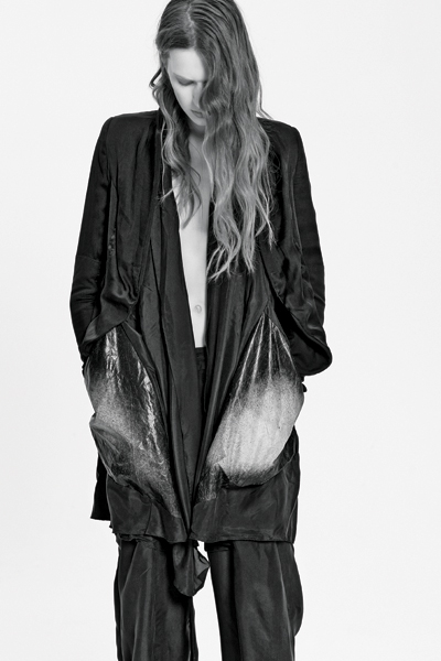 Trosman parece estar funcionando con los elementos que ha encontrado en un glaciar. Un glaciar urbano donde la nieve y el hielo están manchados y contaminados por los ruidos y restos de la producción industrial. Negro, marrón y tonos tierra, enriquecen los matices transparentes y cristalinos de las prendas que reflejan ante los ojos los artificios perfectos de la naturaleza urbana moderna.
